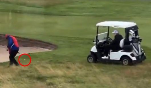 그러자 캐디 한 명이 빠르게 트럼프 앞으로 다가오더니 골프공 하나를 벙커 앞 잔디에 툭 던진다. 캐디는 남들이 눈치채지 못하도록 걸어가면서 자연스럽게 손만 뒤로 내민 채 공을 던진다. 트럼프는 아무 일도 없다는 듯 그 공을 치기 위해 태연하게 카트에서 내렸다.