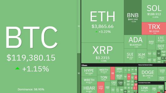 [디지털투데이 AI리포터] 암호화폐 시장이 주 초반부터 상승 흐름을 이어가며 투자심리가 점차 회복되는 분위기다. 비트코인이 11만9000달러를 돌파하며 다시 연고점을 향한 시도에 나섰고, 이더리움·바이낸스코인 등 주요 알트코인도 동반 강세를 보이며 시장 전반에 긍정적인 시그널을 보냈다.
