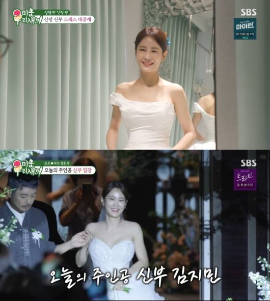 또한 가수 거미, 김지민의 로망이었던 변진섭의 축가가 현장을 가득 채운 뒤 결혼식 2부가 시작됐다. 김지민의 어머니는 두 사람 몰래 깜짝 축하 메시지를 준비했고, 그 진심 어린 말에 감동한 김지민은 결국 눈물을 흘려 보는 이들의 마음을 뭉클하게 했다.