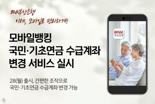 BNK부산은행이 시니어 고객의 금융 편의성을 높이기 위해 모바일뱅킹 애플리케이션(앱)을 통한 '국민·기초연금 수급계좌 변경 서비스'를 시행한다고 밝혔다.