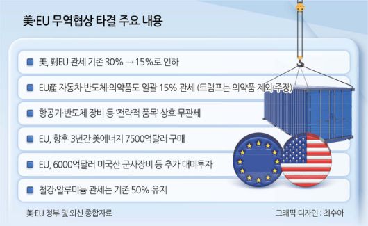 유럽연합(EU)과 일본은 대미 관세협상을 15%로 낮추면서 천문학적 규모의 미국 투자 패키지를 약속했다는 점에서 닮은꼴을 보인다.