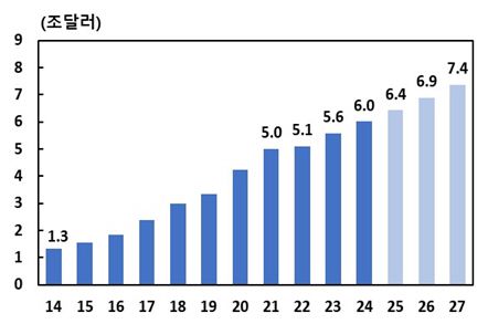 해외 전자상거래 규모는 국내에서 해외 상품을 온라인으로 구매하는 금액이 2017년 94조 원에서 2024년 259조 원으로 8조 1000억 원으로 연평균 15.6%성장했다.
