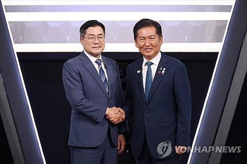 정 후보는 전날 TV 토론 후 기자들과 만난 자리에서는 이른바 '명심'(明心·이재명 대통령의 의중)이 박 후보에게 향한 것 아니냐는 지적을 일축하며 "이번 전당대회는 오직 당원, 오직 당심, 당원들이 결국 승부를 가릴 걸로 생각한다"고 말하기도 했다.