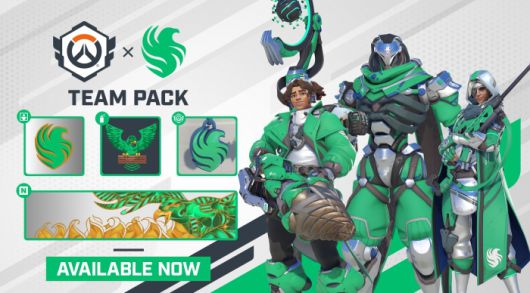 각자 응원하는 팀에 대한 애정을 직접 표현할 수 있도록 마련된 이번 팀팩 번들은 크레이지 라쿤, 제타 디비전, T1, 팀 팔콘스 등 총 9개 OWCS 파트너 팀의 영웅 스킨과 아이템으로 구성되며, 판매 수익의 일부는 각 팀에 전달되어 선수들의 활동을 지원하는 데 사용된다. 또한 신규 전설 스킨 ‘찬란한 천사 메르시(Radiant Angel Mercy)’ 역시 일정 기간 동안 판매, 해당 수익 역시 OWCS 파트너 팀들을 위한 지원금으로 활용될 예정이다.