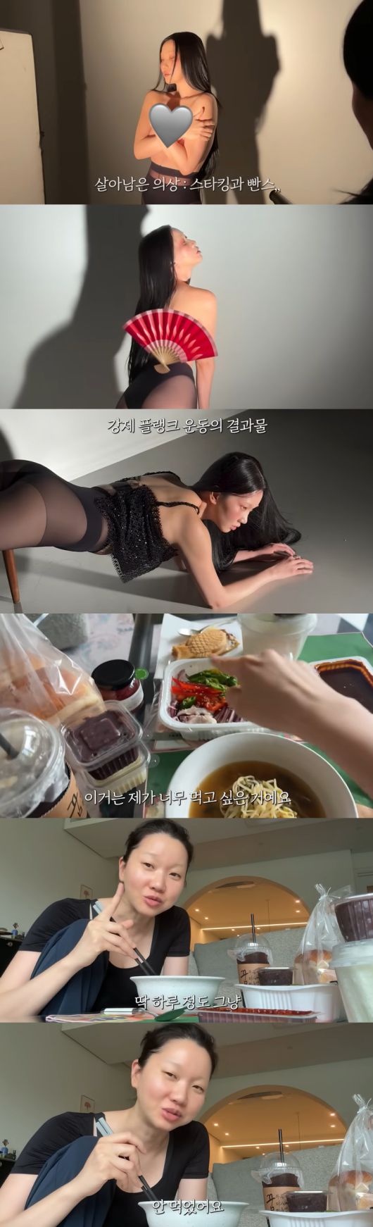 장윤주는 "오늘 촬영 너무 힘들었고, 딱 하루 정도 그냥 안 먹었다. 어제 아침 먹고 점심, 저녁, 오늘 아침까지는 안 먹었다"며 힘들었던 촬영 준비 과정을 토로한 후 후식으로 팥빙수를 흡입하며 휴식 시간을 즐겼다.