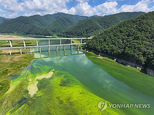 연이은 폭염에 소양호 상류 뒤덮은 녹조 |