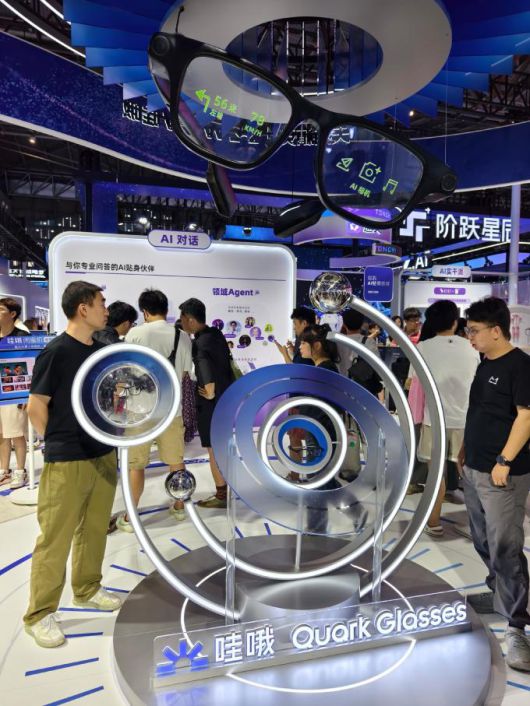 이곳 부스 책임자는 "이 안경은 차세대 인간-컴퓨터 상호작용의 감각 센터"라고 소개했다. 퉁이첸웬(Tongyi Qianwen) 대형 모델과 쿼크(Quark) AI 기능을 탑재한 이 안경은 오토내비(AutoNavi) 내비게이션, 알리페이(Alipay) 결제, 타오바오(Taobao) 가격 비교 등의 기능을 지원한다.