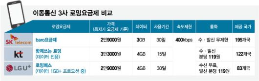이통 3사는 여름 휴가철을 맞아 로밍 요금제 프로모션도 진행 중이다. SK텔레콤은 내달 13일까지 '바로 요금제'를 50% 할인된 가격에 제공한다. T월드 앱이나 홈페이지의 이벤트 페이지에서 구매할 수 있다.