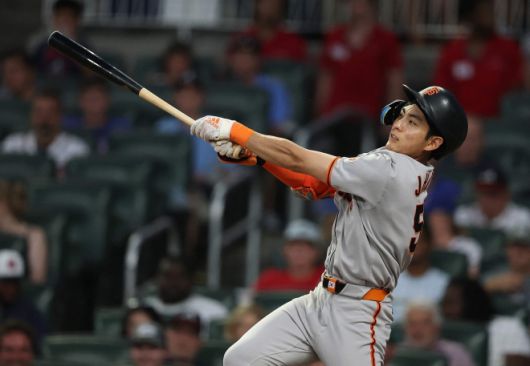 샌프란시스코 자이언츠 이정후가 23일(한국시간) 미국 조지아주 애틀랜타 트루이스트파크에서 열린 2025 미국프로야구 메이저리그(MLB) 정규시즌 애틀랜타 브레이브스와의 원정 경기에서 타격하고 있다. AFP 연합뉴스 |