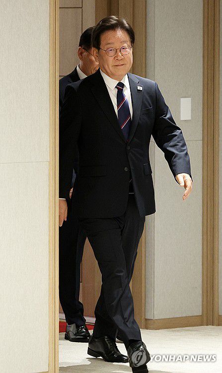 (서울=연합뉴스) 한상균 기자 = 이재명 대통령이 28일 용산 대통령실에서 열린 김상환 헌법재판소장과 오영준 헌법재판관 임명장 수여식에 입장하고 있다. 2025.7.28 [대통령실통신사진기자단]