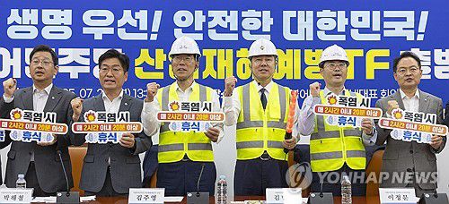 이정문 정책위 수석부의장도 "지난 2022년 1월부터 중대재해처벌이 시행돼 처벌 대상과 수위가 확대됐다"며 "이에 따라 현장에서 많은 점이 개선됐지만 여전히 부족한 점도 있다"며 "사각지대에 계신 분들이 작업 현장에서 돌아가시거나 다치지 않도록 선제적으로 제도적 미비점을 (개선하기 위해) 더 준비하겠다"고 말했습니다.