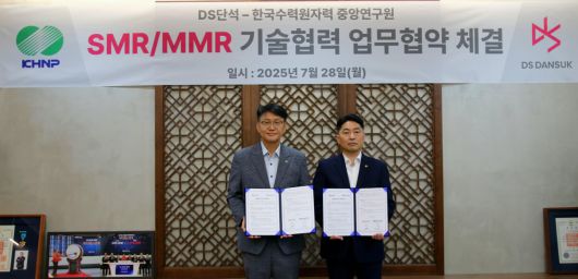 자원 순환 에너지 기업 DS단석이 한국수력원자력 중앙연구원과 SMR(소형원자로), MMR(초소형원자로) 분야 기술개발을 위한 업무협약(MOU)을 체결했다고 28일 밝혔다.