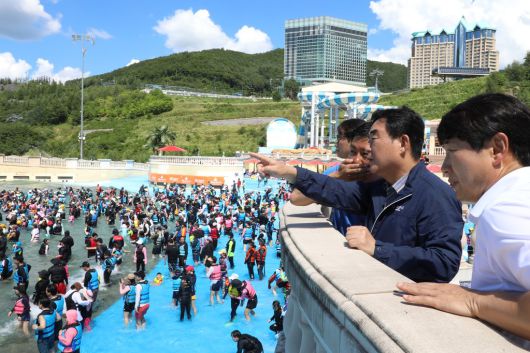 최 직무대행은 워터월드를 방문해 현장근로자와 협력업체 근로자들의 근무 환경을 확인하고, 고객안전 확보를 위해 미끄럼 사고 예방 조치 현황과 의무실 내 의료 인력·장비 상태를 살폈다.