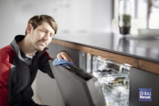 밀레 식기세척기의 위생상태를 정밀 점검하고 전문 케어 서비스를 제공하는 모습. ⓒ밀레