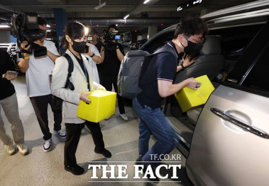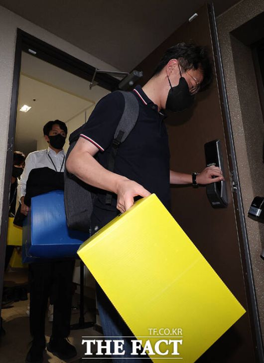 [더팩트ㅣ이새롬 기자] 김건희 여사 관련 각종 의혹을 수사하는 김건희 특검팀(특별검사 민중기)이 28일 서울 노원구 상계동 이준석 개혁신당 대표 자택에서 압수수색을 마친 뒤 압수품을 옮기고 있다.