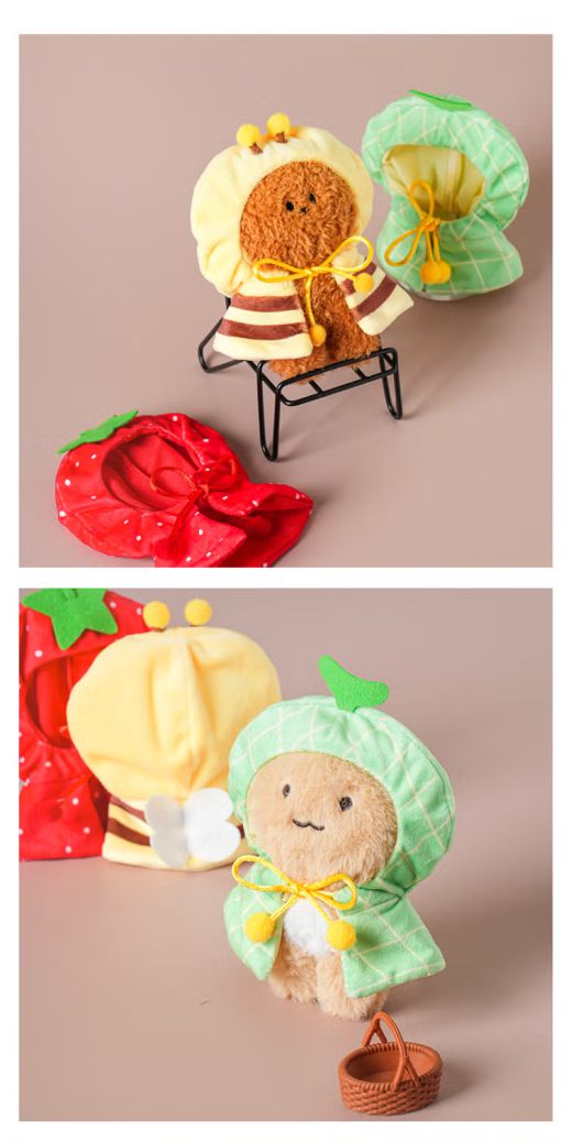 그도 그럴 것이 다이소 인형옷은 단순한 ‘귀여움’ 그 이상입니다. 후르츠 망토, 일상복 세트, 우비, 꾸안꾸 캐주얼룩, 잠옷, 딸기 모자, 멜빵바지 등 구성도 다양하죠. 그중 일부는 모자+상의+하의 구성으로 된 풀세트는 어느 하나도 놓칠 수 없는데요. 색감은 톡톡 튀고, 디테일도 예상외로 훌륭합니다. 작은 단추나 벨크로 마감, 고무줄 처리된 모자 테두리까지… 제품만 놓고 보면 이게 정말 1000원짜리인지 두세 번은 다시 보게 되는데요. 보통 인형옷 한 벌 가격이 1만 원에서 2만 원 사이인 걸 감안하면 거의 ‘현실 부정급’ 가격 파괴수준입니다.