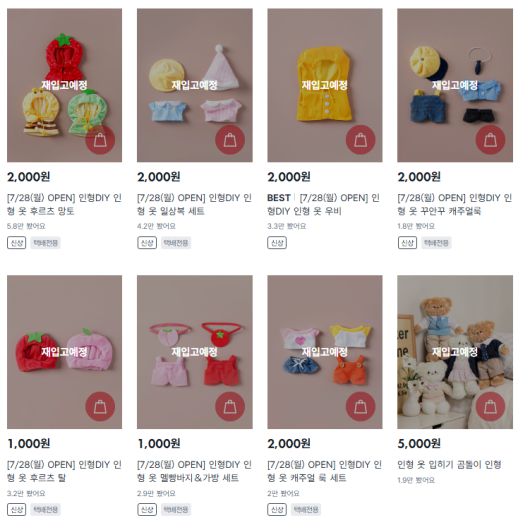 28일 온라인 다이소몰에 정식으로 모습을 드러낸 인형옷 시리즈는 하루도 채 지나지 않아 전 제품이 자취를 감췄습니다. ‘구매하기’ 버튼은 온데간데없고 화면에는 ‘재입고 예정’이라는 공허한 문구만 남았는데요. 그런데 이마저도 이내 ‘추후 판매 예정’으로 바뀌면서 소비자들에겐 한층 더 격한 기다림을 예고했죠. 우비, 망토, 일상복 세트, 딸기 모자까지. 손바닥 안에 쏙 들어오는 이 앙증맞은 인형옷 아이템들엔 현재 ‘품절’이라는 인기의 훈장이 나란히 달려 있는데요. 단돈 1000~2000원. 더 놀라운 건 역시 다이소다운 가격표입니다.
