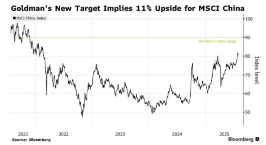 골드만삭스는 지난 5월에도 미국과 중국 간 관세 완화 조치를 근거로 MSCI 차이나 지수 목표치를 무역 갈등 이전 수준으로 복원한 바 있다. 이후 해당 지수는 약 8% 상승했다.