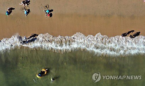 (거제=연합뉴스) 김동민 기자 = 폭염이 이어진 28일 오후 경남 거제시 일운면 구조라해수욕장을 찾은 피서객이 물놀이를 즐기고 있다. 2025.7.28