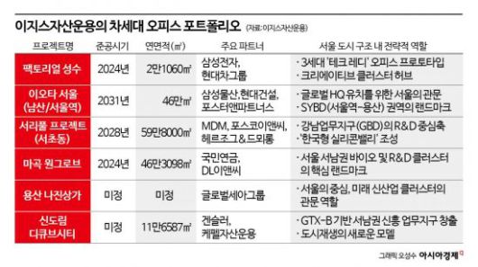 아시아 지역 상업용 부동산 운용규모 세계 2위인 이지스자산운용이 서울 핵심 거점 여섯 곳에서 추진 중인 차세대 오피스 포트폴리오에 시장의 이목이 쏠리고 있다.