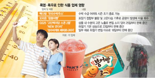 극한폭우에 이어 40도에 육박하는 폭염이 이어지면서 식음료업계와 유통업계의 제품 수급 및 품질관리에 비상이 걸렸다. 작황 부진으로 수박 등 원재료 수급에 난항을 겪는가 하면, 제조 및 유통/보관 과정에서 곰팡이가 발생하는 등 변질 문제도 속속 불거지고 있다. 업계는 사전에 비축한 원재료를 이용하는 방식으로 공급을 이어가고 있지만 일부는 아예 제품 판매를 아예 중단하며 대응에 나서고 있다.