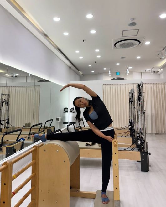공개된 사진 속에서 박지윤은 필라테스 스튜디오에서 유연한 자세로 스트레칭을 하는 모습을 보였다. 레깅스와 상체 라인이 드러나는 상의를 착용한 채, 필라테스 기구 위에서 다리를 올린 채 스트레칭에 집중하고 있다.