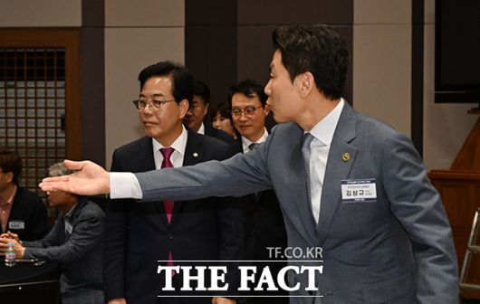 [더팩트ㅣ박헌우 기자] 김상규 한국인터넷신문협회 수석부회장(오른쪽)이 28일 오후 서울 중구 한국프레스센터에서 열린 '2025 인터넷신문의 날 기념식' 참석에 앞서 송언석 국민의힘 비상대책위원장 겸 원내대표에게 자리를 안내하고 있다.