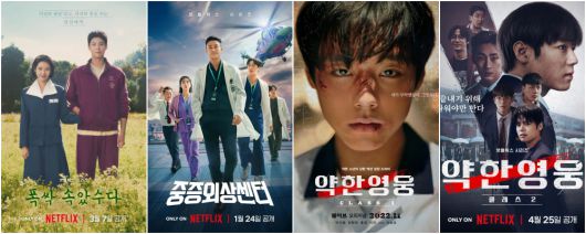 '약한영웅' 시리즈도 선전했다. '약한영웅 시즌1'(2022)은 2,230만 뷰를 기록, 36위를 차지했다. 시즌2는 1,960만 시청 시간으로, 45위에 올랐다.