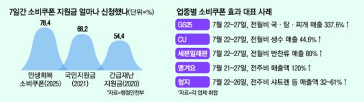 경기 고양에서 GS25 편의점을 운영하는 한 가맹점주는 “소비쿠폰 지급 후 달걀, 과일 등 식재료 소비가 크게 늘었고, 특히 이번 주말엔 가족 단위로 매장을 찾는 사례가 많이 확인됐다”고 말했다.