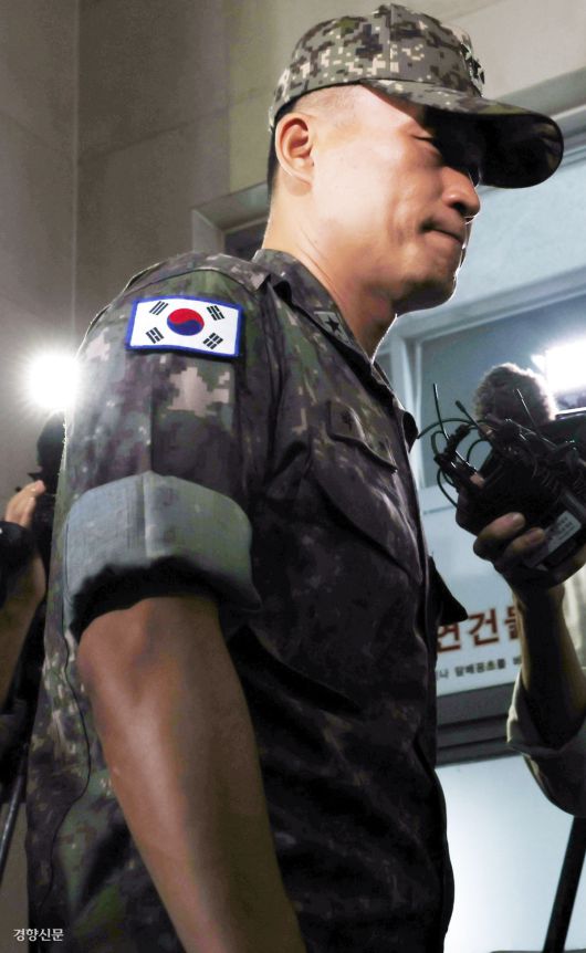 이종섭 전 국방부 장관의 최측근 참모였던 박진희 전 군사보좌관(육군 소장)이 28일 서울 서초구 순직해병특검 사무실에 출석하고 있다. 한수빈 기자 |