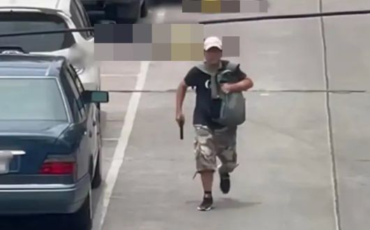 태국 경찰이 공개한 영상에는 검은색 티셔츠에 흰색 야구 모자를 착용한 용의자가 총기를 든 채 배낭을 몸 앞으로 메고 시장 주차장 쪽으로 걸어가는 모습이 담겼다.