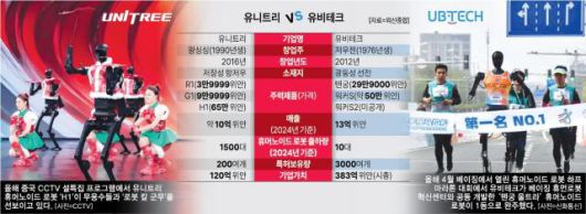 중국 대표 휴머노이드 로봇 기업인 유니트리와 유비테크 비교 [그래픽=아주경제DB] |