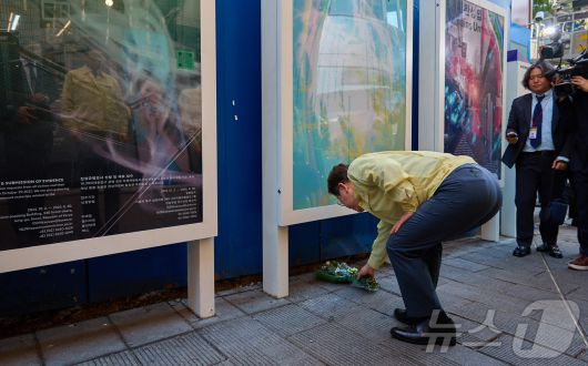 이재명 대통령이 지난달 12일 서울 용산구 이태원 참사 현장에 조성된 ‘10·29 기억과 안전의 길’을 방문해 참사 희생자들을 추모하고 있다. (이재명 대통령 SNS. 재판매 및 DB 금지) 2025.6.13/뉴스1 ⓒ News1 허경 기자 |