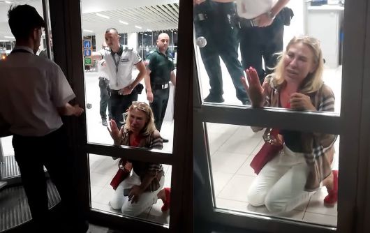 불가리아의 공항에서 한 여성이 탑승을 거부당해 무릎을 꿇고 흐느끼는 장면이 공개돼 논란이 일고 있다.