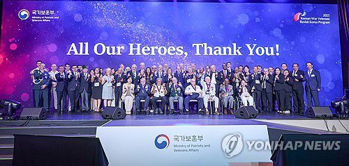 (서울=연합뉴스) 강윤진 국가보훈부 차관이 지난 28일 서울 용산구 그랜드 하얏트 호텔에서 열린 에서 참석자들과 기념 촬영하고 있다. 2025.7.29 [국가보훈부 제공. 재판매 및 DB 금지]
