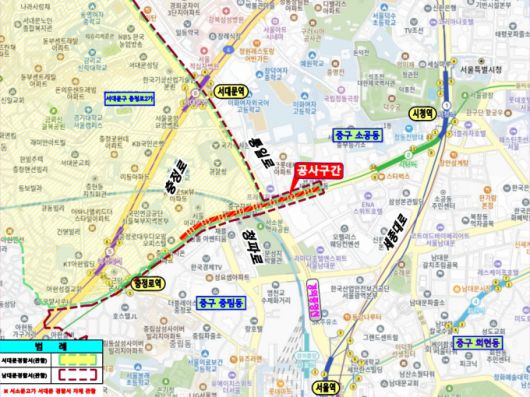 시는 서소문고가도로 철거로 충정로역→시청역 방향은 기존 4차로(고가 2, 지상 2)에서 지상 2차로, 시청역→충정로역 방향은 기존 3차로(고가 2, 지상 1)에서 지상 1차로로 축소되면서 교통혼잡이 예상된다고 설명했다.