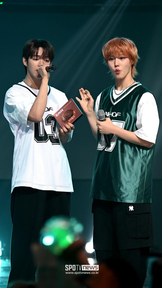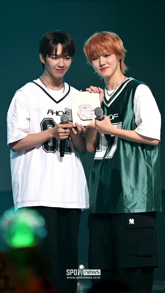 [스포티비뉴스=박성기 기자] 그룹 아홉(AHOF) 제이엘, 박주원이 25일 방송된 케이블채널 ENA의 'ENA 케이팝업 차트쇼'에서 1위를 수상 후, 트로피를 함께 들고 있다. <저작권자 ⓒ SPOTV NEWS. 무단전재 및 재배포 금지>