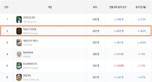 특히, 6월 기준 모바일 MMORPG 장르에서 10대 월간 활성 이용자 수(MAU) 게임 순위 1위를 차지하면서 30대, 40대 이용자가 주를 이뤘던 기존 시장에 새로운 가능성을 제시했다.