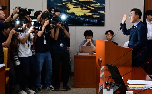 [헤럴드경제=이상섭 기자] 김윤덕 국토교통부 장관 후보자가 29일 오전 서울 여의도 국회 국토교통위원회에서 열린 인사청문회에서 선서를 하고 있다.