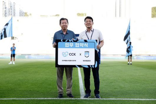 천안시티FC는 7월 26일(토) 오후 7시, 천안종합운동장에서 열린 하나은행 K리그2 2025 22라운드 홈경기에서 한국백혈병소아암협회 충청지회와 업무협약을 체결했다. 협약식에는 협회 박우성 회장과 천안시티FC 강명원 단장이 참석해 상호 협력 의지를 나눴다.