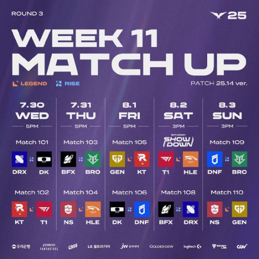 리그오브레전드 챔피언스 코리아(대표 오상헌, 이하 LCK)는 오는 30일부터 8월 3일까지 2025 LCK 3라운드 2주 차가 진행된다고 29일 밝혔다.