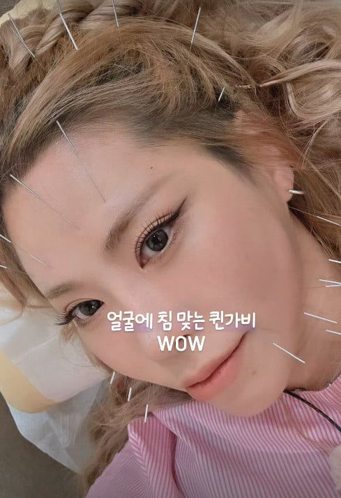 가비는 지난 28일 자신의 인스타그램 스토리에 "얼굴에 침 맞는 퀸가비 WOW"라는 문구와 함께 한 장의 사진을 게재했다.