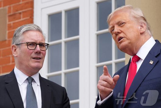 28일(현지시간) 도널드 트럼프 미국 대통령이 스코틀랜드 턴베리의 트럼프 턴베리 골프클럽에서 키어 스타머 영국 총리와 대화하고 있다. 2025.07.28 ⓒ 로이터=뉴스1 ⓒ News1 김지완 기자 |