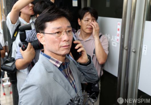 [서울=뉴스핌] 정일구 기자 = 임성근 전 해병대 1사단장이 29일 오전 서울 서초구 순직해병 특검(이명현 특별검사) 사무실에 업무상과실치사상 사건 신속 결정 요청서 제출을 위해 방문했지만 출입문이 닫혀 들어가지 못하자 특검 관계자에게 전화를 걸고 있다. 2025.07.29 mironj19@newspim.com