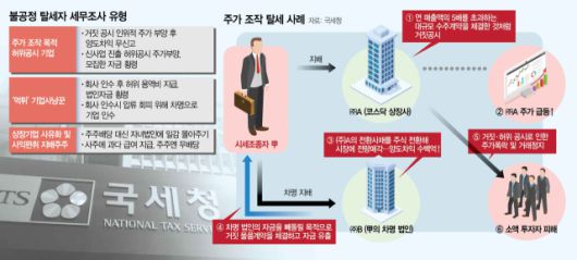 민주원 국세청 조사국장은 “자체 정보 수집을 강화하고 수사기관 및 금융 당국과도 정보를 빈틈없이 공유할 것”이라며 “향후 주가조작 행위가 확인되는 경우 추가 세무조사를 실시하는 등 강력히 대처해나가겠다”고 말했다.