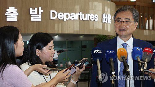 (서울=연합뉴스) 이진욱 기자 = 29일 일본을 방문하는 조현 외교부 장관이 서울 강서구 김포국제공항에서 취재진 질문에 답하고 있다. 2025.7.29