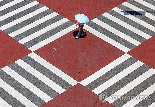 (서울=연합뉴스) 김성민 기자 = 폭염이 이어지고 있는 29일 서울 성동구 왕십리역 인근에서 양산을 쓴 시민이 이동하고 있다. 2025.7.29