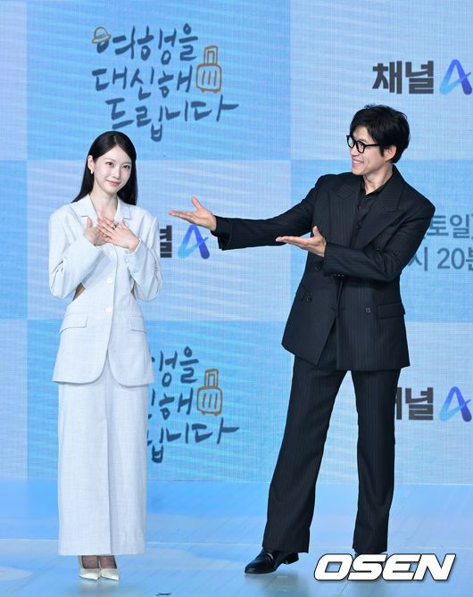 [OSEN=조은정 기자]29일 오후 서울 상암동 쇼킹케이팝센터에서 채널A 새 토일드라마 ‘여행을 대신해 드립니다’ 제작발표회가 열렸다. 이날 행사에는 배우 공승연, 유준상, 김재영, 홍수현, 오현중, 강솔 감독이 참석했다. 배우 공승연, 유준상이 포즈를 취하고 있다. 2025.07.29 /cej@osen.co.kr