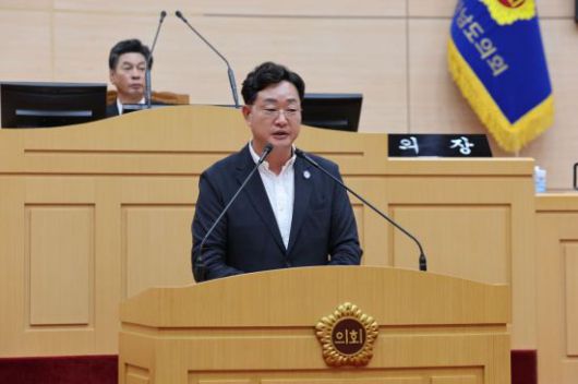 나광국 전남도의원(더불어민주당·무안2)이 지난 28일 전라남도의회 본회의에서 5분 자유발언을 통해 도내 산업단지 근로자를 위한 아침식사 지원사업의 필요성을 강조했다. 전남도의회 제공 |