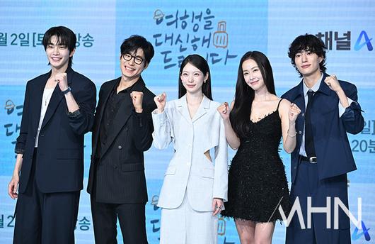 (MHN 이현지 기자) 배우 김재영, 유준상, 공승연, 홍수현, 오현중이 29일 오후 서울 마포구 쇼킹케이팝센터에서 진행된 채널A 새 토일드라마 '여행을 대신해 드립니다' 제작발표회에 참석해 포토타임을 갖고 있다.